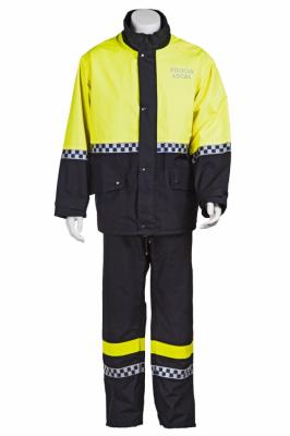 Prenda amplia compuesta de chaqueta y cubre-pantalón, de uso contra la lluvia. En tejido impermeable y transpirable, termosellado en todas sus costuras.