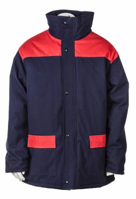 Prenda de frio destinada a la protección contra riesgos térmicos. Cerrada mediante cremallera oculta con tapeta y broches de presión. Dos bolsillos delanteros inferiores de plastón cerrados mediante tapeta y velcro. Puños cortavientos, capucha con cordón de ajuste y ceñidores oculta en cuello.