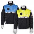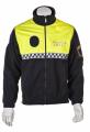 Prenda color azul noche, con canesú superpuesto en amarillo alta visibilidad o azulina.