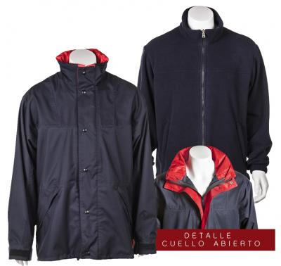 La parte superior del forro interior es de rejilla, para mejor transpirabilidad, el resto de forro poliéster con un bolsillo interior, con cremallera para acoplar polar desmontable